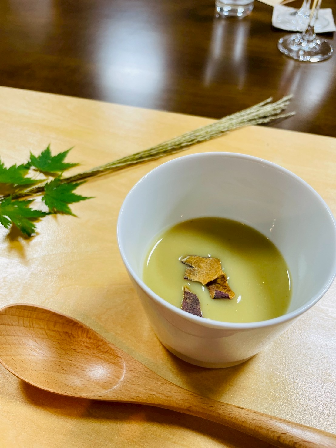 リトリートガイドのちえみさんが丁寧に育てたさつまいもを、宿泊先の和風いん越路さんがその旨みを最大限に生かしたお料理に仕立てました。この時期のこのリトリートだからこそいただける特別なお料理です。