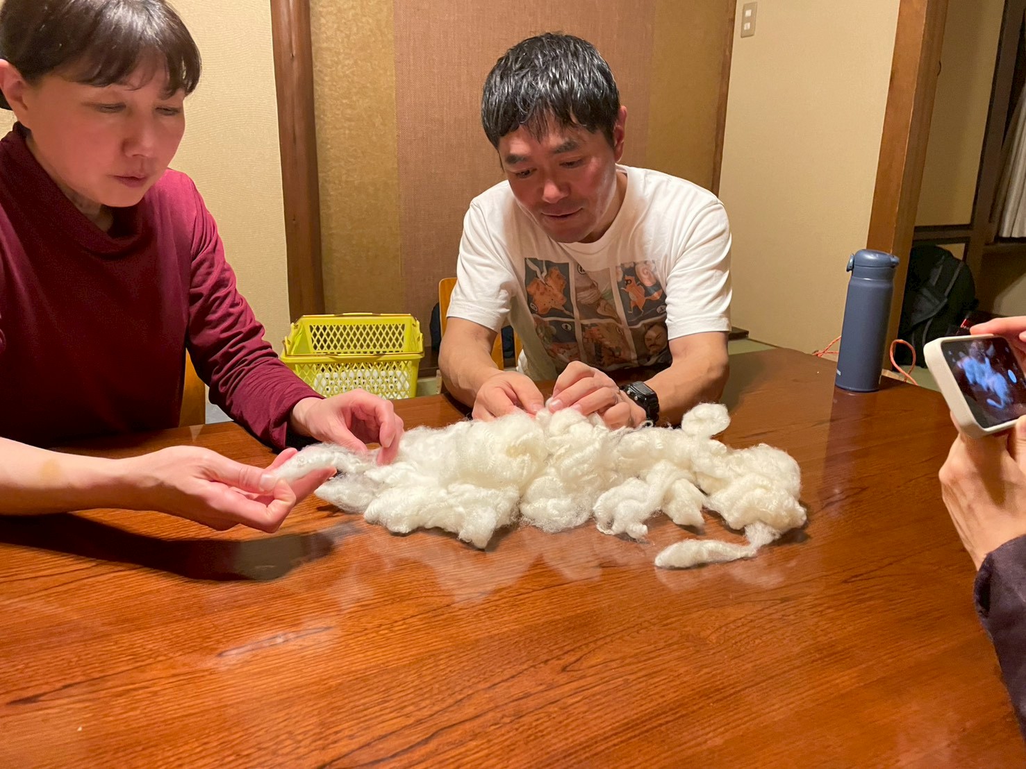 夕食の後は、暖かい室内で「静」の時間へ。 地元の作家さんに教わりながら、ふわふわの羊毛を糸車やスピンドルを使って一本の糸へと紡いでいきます。 単純な作業の繰り返しですが、指先の感覚に集中していると、不思議と心が「無」になり、瞑想のような心地よさに包まれます。地元の方との穏やかなおしゃべりと、自分の手で何かを生み出す喜びが、凝り固まった心を優しくほぐしてくれます。